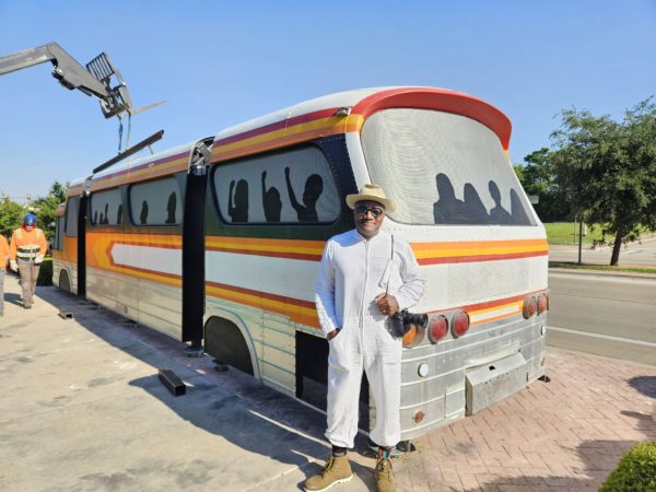 Unfortunately,  a hit-and-run driver damaged the East Rosedale Monument Project, the City-commissioned artwork by local artist Christopher Blay sited on East Rosedale Street near Evans Avenue. Arts Fort Worth staff and artist Christopher Blay have identified a company to make repairs once a donor bus can be found for use in reconstructing the front section. Bollards are being planned as part of the repairs to protect from future damage, and signage will be placed on the site notifying the public repairs are coming.